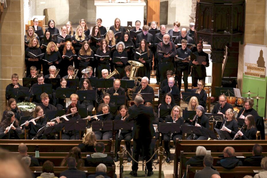 Zugunsten der Stiftung Stadtkirche St. Bernhard verwandelte sich die Winnender Schlosskirche in einen Ort festlicher Musik und bewegender Gemeinschaft. Bei dem Konzert des SBOW sowie des Vokalensembles der Musikschule wurden mehr als 2.000 Euro gespendet!